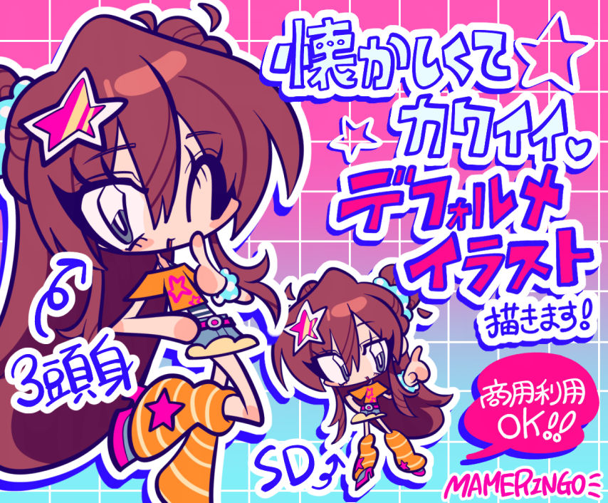 平成に流行したような、カラフルでポップな作品を得意としておりますが、ゴス&パンクスタイルや和の文化(特に江戸時代)にも精通しておりますので、そちらのテイストのご依頼でもお役に立てるかと思います。