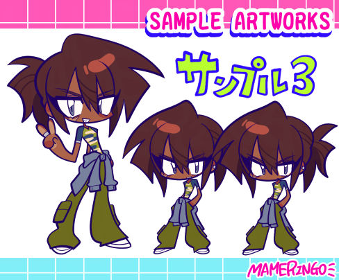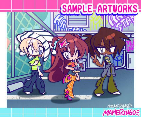 他と被らない、目を惹く画風なため、グッズイラストは勿論、ポスターやWEBサイトのトップページ、ゲーム内イラスト等にもピッタリです。